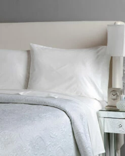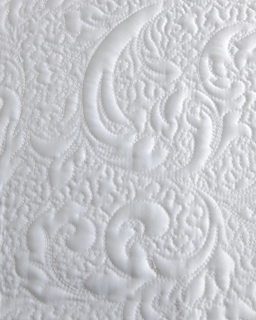 - White quilted coverlet with quilted damask pattern