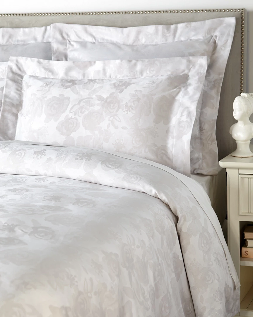 - Grey duvet set and shams with rose jacquard pattern