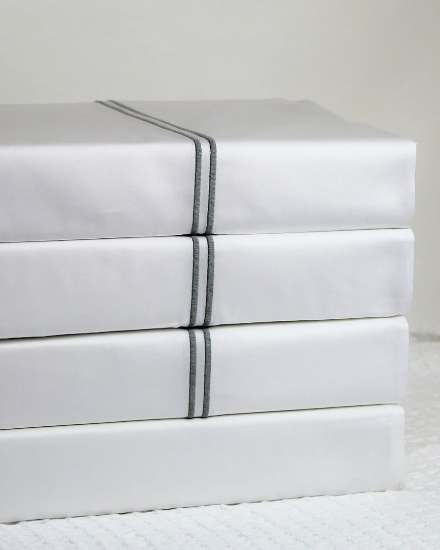 - Queen: flat sheet (94in x 114in); fitted sheet (60in x 80in); two pillowcases (21in x 32in)